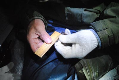 みんないる中、明かりを照らされ乳頭を見られるヒメヒナコウモリ。恥ずかしくてたまらないだろう。