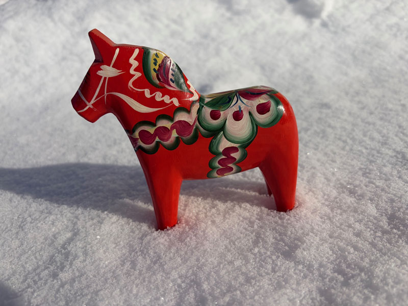 弊社はスウェーデン北部のハグロフ社と取引があり、本ダーラナホースは20年以上前に私がハグロフ社を訪問した時にスウェーデンで買ってきたものです。私が頻繁にスウェーデンを訪問していたころスウェーデンは、「高福祉の国」として日本のロールモデルとして頻繁に取り上げられていました。しかし実際は高負担な国でもありました。現在スウェーデンは寛容な移民受け入れ政策推進の結果、さまざまな社会問題が表面化しています。20年前とはすっかり様変わりしたとスウェーデンの友人からも聞いています。